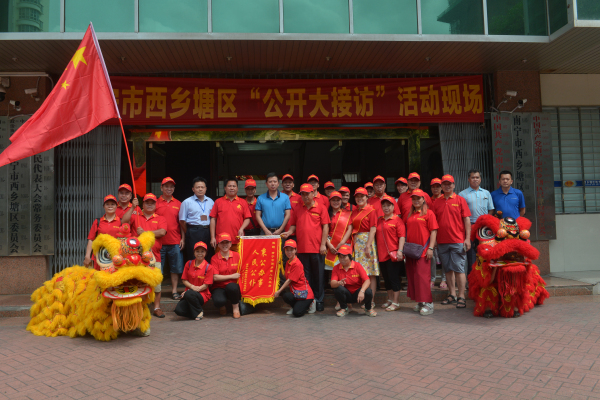 6月27日,全市统一开展2018年第二季度“公开大接访”活动。活动当天,西乡塘区新阳路292-1号新阳国际小区业委会组织30多名业主代表到西乡塘区政府办公大楼门口敲锣打鼓、舞龙耍狮,给城区政府送来一面绣有“人民公仆,秉公办事”的锦旗,对城区党委、政府积极协调解决该小区多年来的用电难题表示衷心感谢。