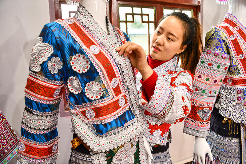 “苗绣既是传统的也是时尚的,你们一针一线绣出来,何其精彩!”习近平总书记勉励大家,一定要把苗绣发扬光大,这既是产业也是文化,发展好了既能弘扬民族文化、传统文化,同时也能为产业扶贫、为乡村振兴作出贡献。