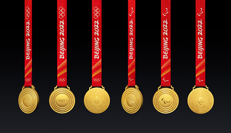 2021年10月26日,北京冬奥会开幕倒计时百天之际,冬奥会和冬残奥会奖牌问世。宛如同心圆玉璧的奖牌上,铭刻冰雪纹和祥云纹。古老东方文明与奥林匹克精神,于方寸之间交相辉映。