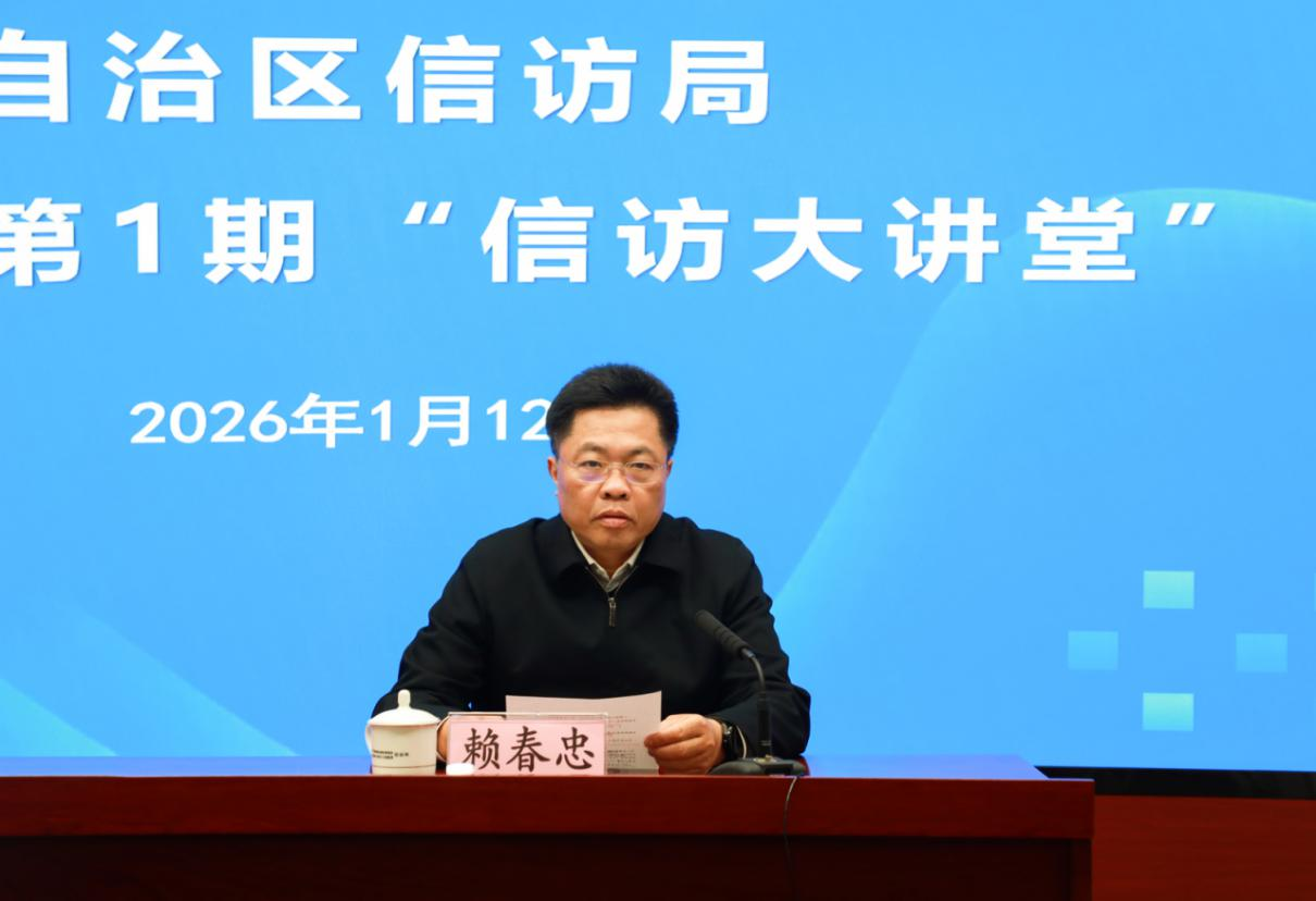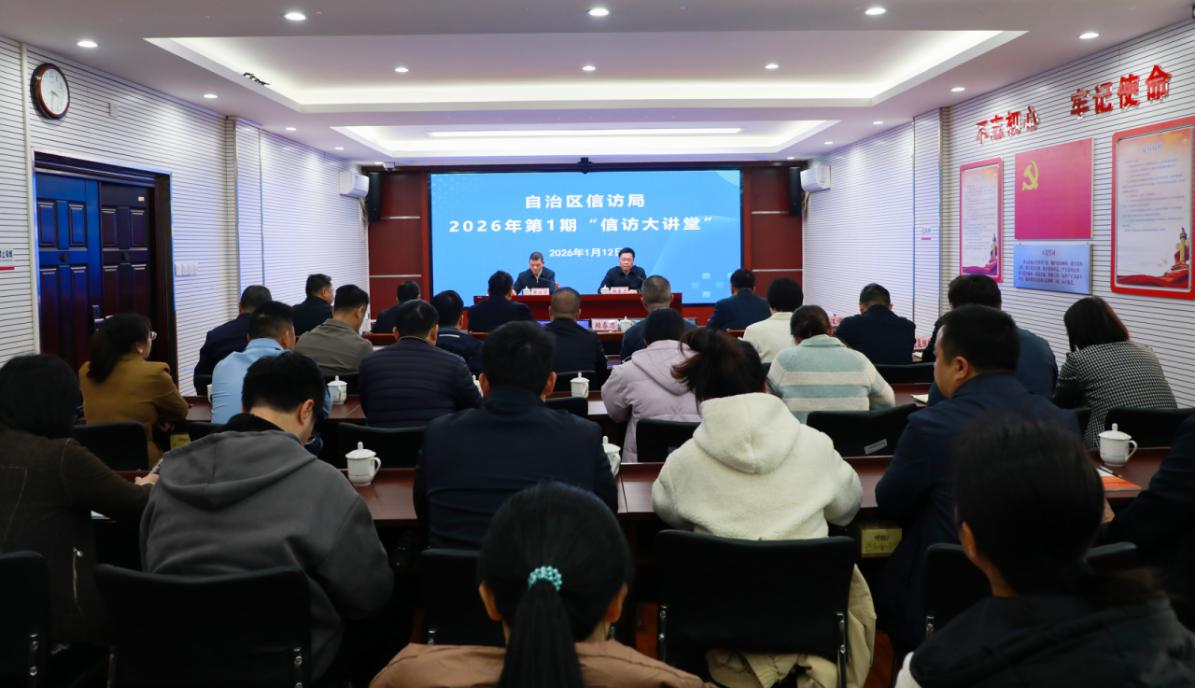为深入学习贯彻党的二十届四中全会精神和习近平总书记关于加强和改进人民信访工作的重要思想,深入推进信访工作法治化,全面提升全区信访干部专业素养和履职能力,2026年1月12日,自治区信访局举办本年度第1期“信访大讲堂”专题培训。培训会由自治区信访局局长赖春忠主持,自治区信访局一级巡视员蒋汉学授课。