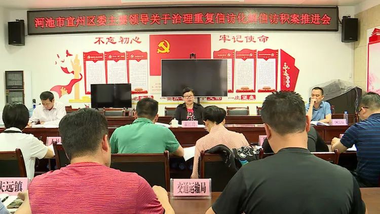 5月4日,河池市副市长、宜州区委书记翟红玲主持召开宜州区委主要领导关于治理重复信访、化解信访积案推进会,听取相关积案化解工作牵头单位汇报治理重复信访、化解信访积案专项工作情况,分析当前形势,部署推进下阶段信访矛盾化解攻坚工作。