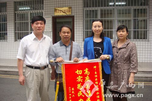 信访当事人向自治区信访局办信处赠送锦旗。通讯员梁勇摄