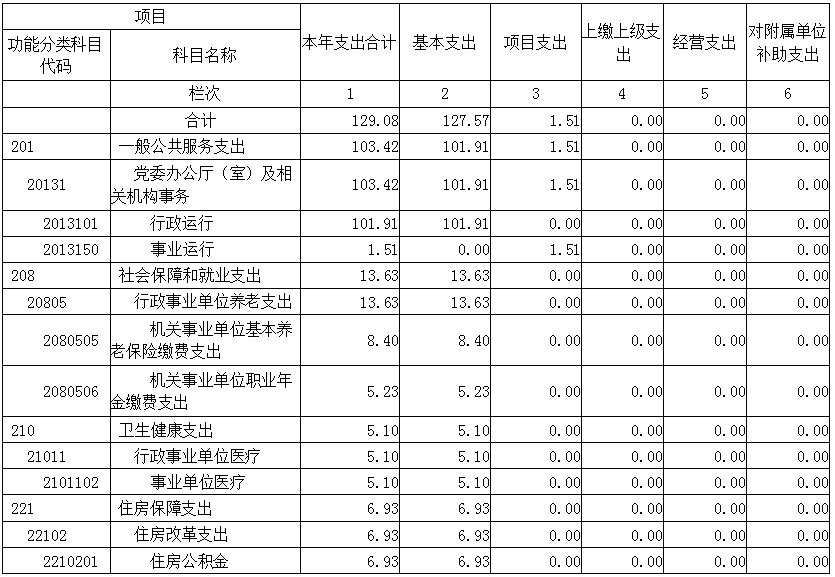 本单位2023年度一般公共预算财政拨款支出129.08万元,较 2022年度决算数增加24.96万元,增长23.97%。其中:基本支出 127.57万元,项目支出1.51万元。
