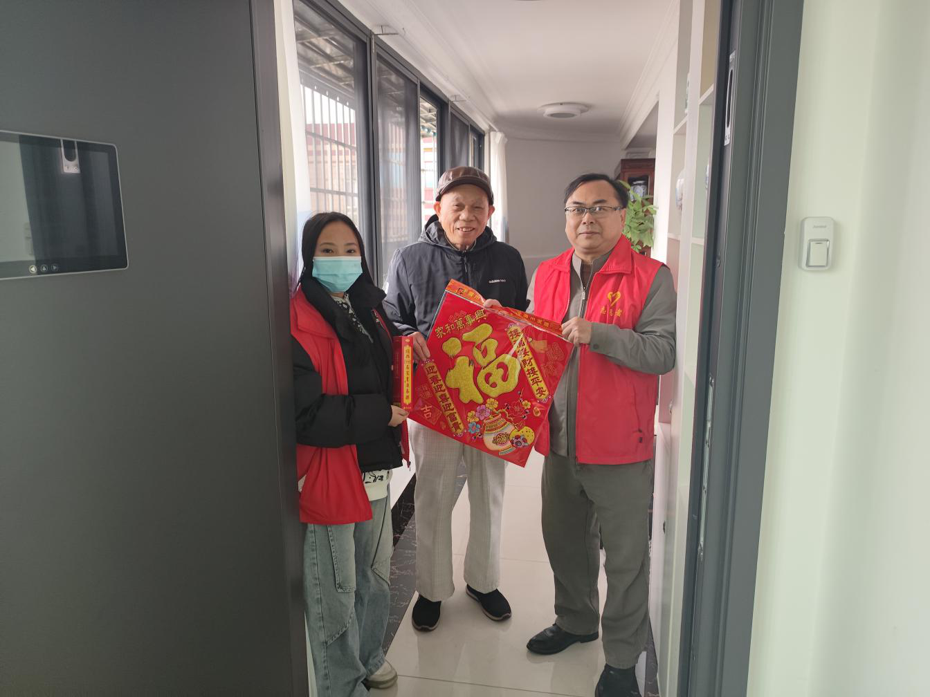 活动现场暖意融融,志愿者们兵分三路,精准聚焦群众需求,把贴心服务送到家门口。在“健康同行”义诊服务点位,医务人员为居民免费测量血压,耐心解答常见病防治、春季养生等健康咨询,用专业的讲解为居民的健康保驾护航;在小区的公共区域、卫生死角和绿化带,志愿者们手持清洁工具认真开展“净美家园”环境清扫,让小区环境在新春前焕新颜,同步宣传垃圾分类知识和北海市文明城市建设基本知识,提高居民的环保意识与文明素养,助力文明城市建设走深走实;针对小区内行动不便的孤寡老人,志愿者们开展“墨香送福”上门服务,将饱含美好祝福的春联福字亲手送到他们手中,与居民亲切交谈,传递节日的问候与关怀。