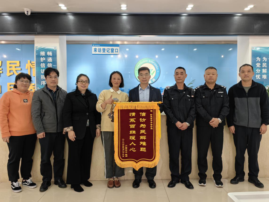 2026年1月30日11时许,市民严女士专程来到防城港市群众信访服务中心,将一面印有“信访为民解难题 情系百姓暖人心”的锦旗送到工作人员手中,对市信访局联合住建部门化解其房屋买卖纠纷、切实维护群众合法权益表示衷心感谢。