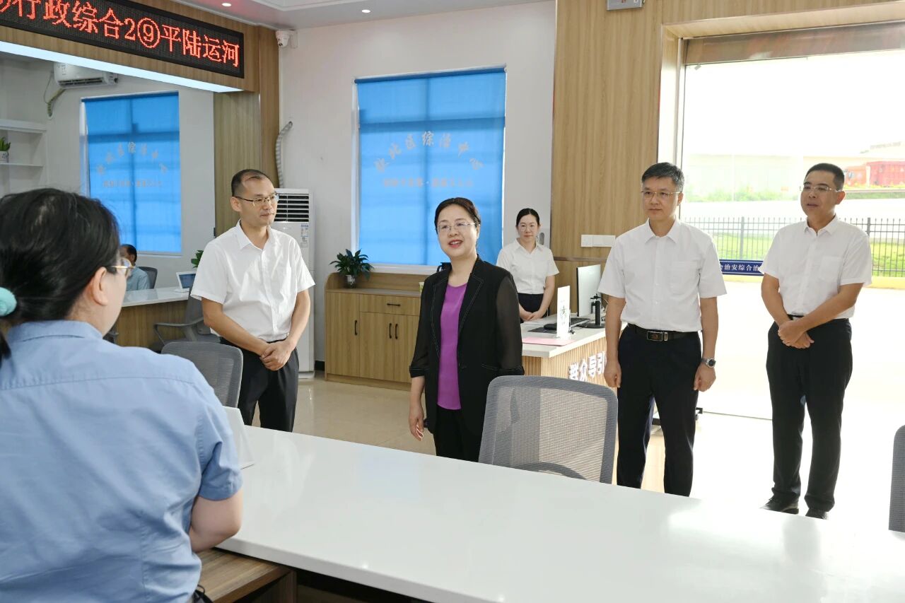 钟畅姿(前右三)调研钦北区社会治安综合治理中心规范化建设、信访法治化、矛盾纠纷化解和落实维护社会稳定责任制等工作情况。融媒体记者 王湖禄 摄