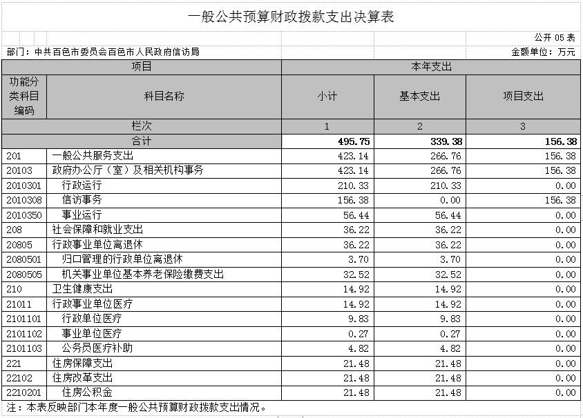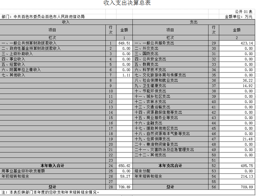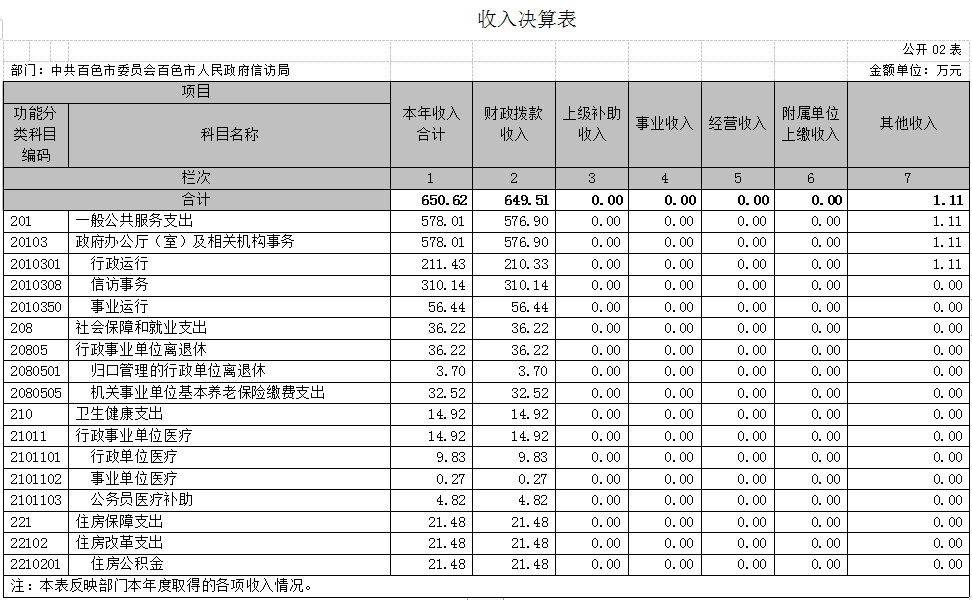 第二部分:中共百色市委员会市人民政府信访局2019年度部门决算报表
