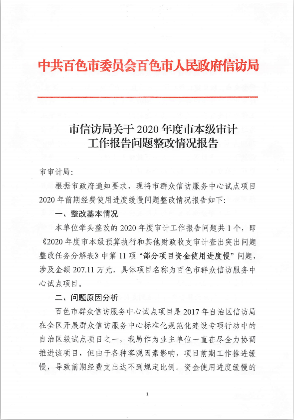 市信访局关于2020年度市本级审计工作报告问题整改的情况报告
