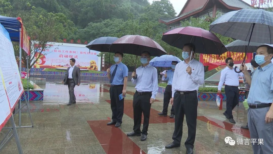 5月23日,平果市《信访工作条例》宣传月活动启动仪式在印象公园举行,平果市委常委、政法委书记陈世桢,市人民政府副市长、公安局局长黄猛,市人民检察院检察长隆振中出席启动仪式。